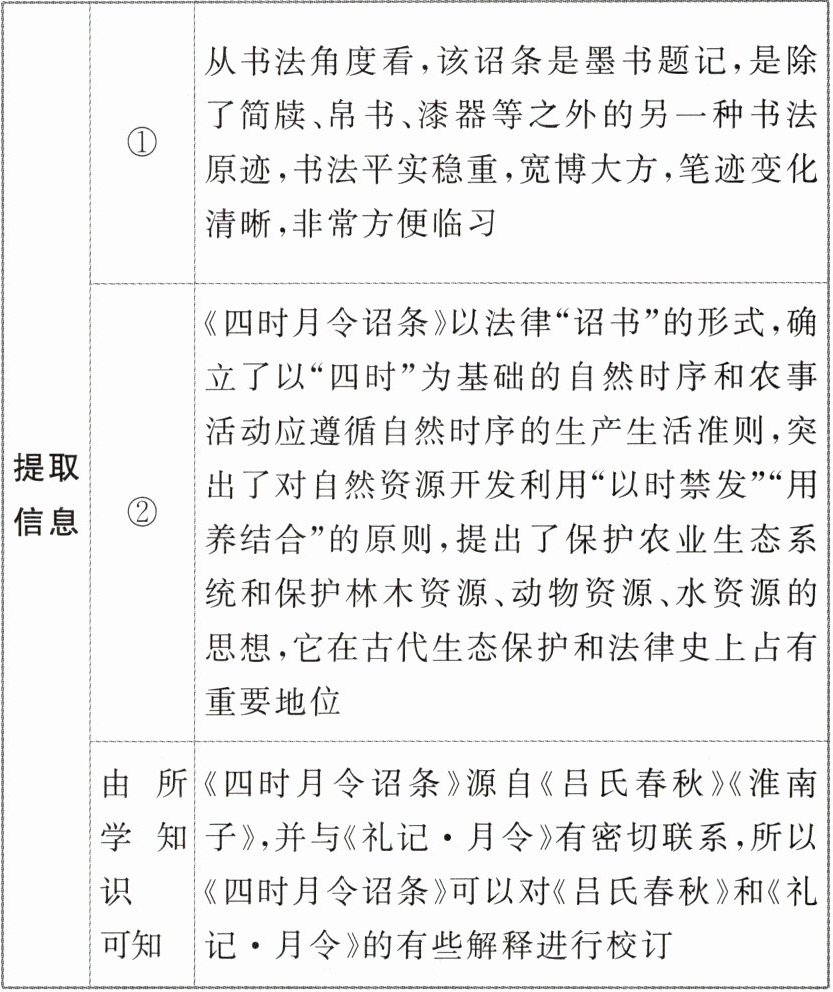 材料二 悬泉置遗址一间房屋内已经破碎的泥墙墙壁上发现了一则墨书题记《使者和中所督察诏书四时月令五十条》①,经专家们修复、释读,定名为《四时月令诏条》。它是西汉元始五年(公元5年)太皇太后发布的诏书,内容主要涉及一年四季的农事活动安排与诸如“毋攻伐大树”“毋杀孩虫”等“顺时应节”的禁令②。