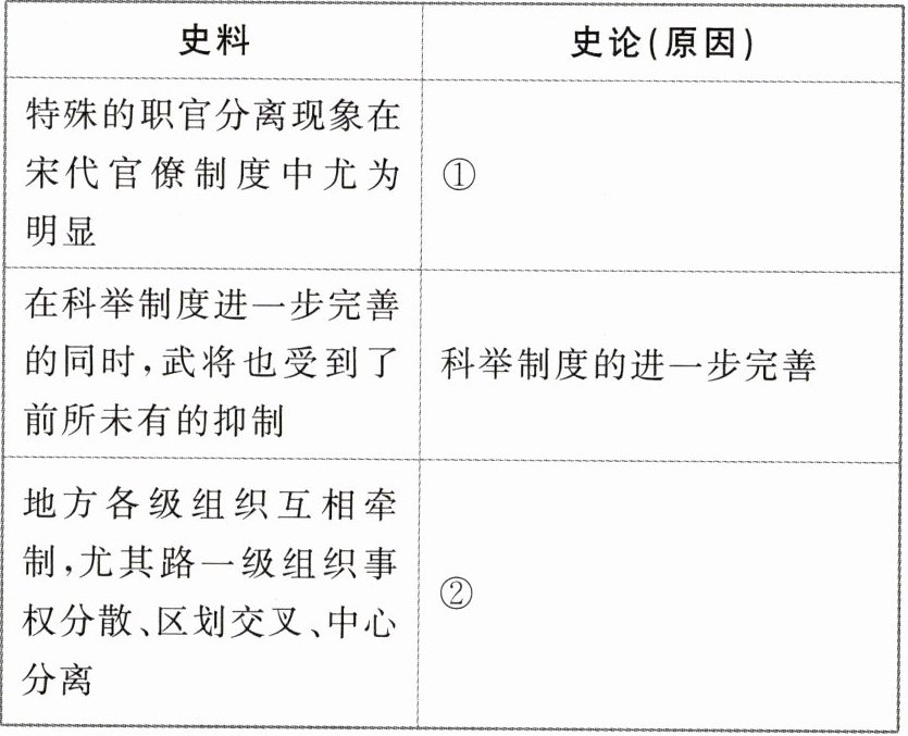 【思考】 根据材料并结合所学知识,围绕“宋代文官制度发展的原因”,建立史料与史论之间的联系。