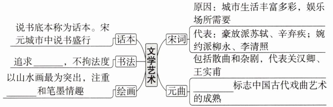 (2022湖南卷,4)涉考南宋画家李唐感叹:“云里烟村雨里滩,看之容易作之难。早知不入时人眼,多买胭脂画牡丹。”这反映当时______文化兴盛。