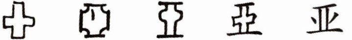 1. (2024七省适应性测试安徽历史,1)文字是保存和传达语言的一种书写符号。下面依次是“亚”的甲骨文、金文、小篆、楷书及现代汉字的书写形式。据此可见(