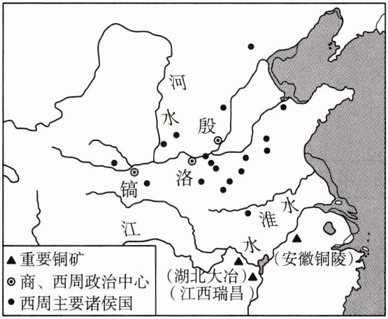 一语点拨:商周政治中心位于黄河流域,说明青铜器的铸造和使用主要在黄河流域,而青铜铸造的原料主要分布于长江流域。