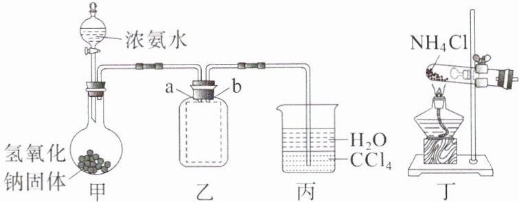 用下图装置(夹持装置已略去)进行$NH_3$制备及性质实验,已知:$NH_3$极易溶于水,而难溶于$CCl_4$,$CCl_4$的密度比水大且与水不互溶。下列说法不正确的是(