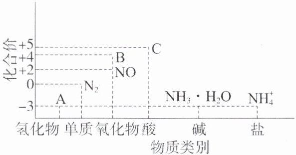 例 1 化合价和物质类别是整理元素及其化合物知识的两个要素,可表示为“价一类二维图”。氮元素的“价一类二维图”如图,下列说法正确的是(