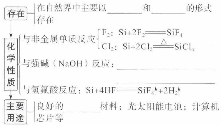 1.硅酸盐 氧化物 ${Si + 2NaOH + H_{2}O -> Na_{2}SiO_{3} + 2H_{2} \uparrow}$ 半导体