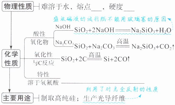 2.高 大 ${SiO_{2} + 4HF -> SiF_{4} \uparrow + 2H_{2}O}$