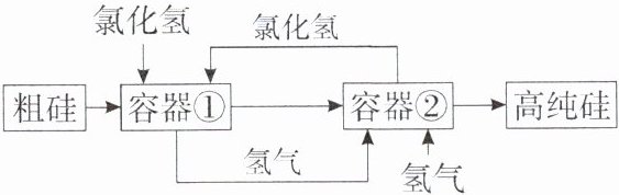 容器①中进行的反应为①$Si(粗) + 3HCl(g) \xlongequal{\triangle} SiHCl_3(l) + H_2(g)$;容器②中进行的反应为②$SiHCl_3 + H_2 \xlongequal{高温} Si(纯) + 3HCl$。下列说法不正确的是(