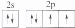 $\begin{array}{cccccc} 2s & 2p \\ \uparrow \downarrow & \uparrow \downarrow & \uparrow & \uparrow \end{array}$