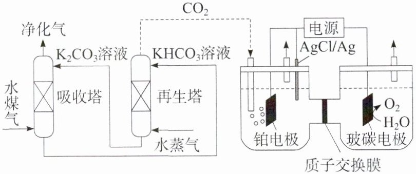 (2)(2022·湖南卷,16 节选)一种脱除和利用水煤气中 $ CO_2 $ 方法的示意图如下: