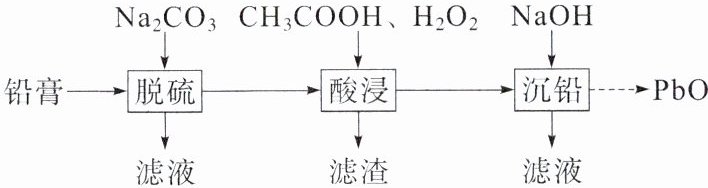 (1)(2022·全国乙卷,26 节选)废旧铅蓄电池的铅膏中主要含有 $ PbSO_4 $、$ PbO_2 $、$ PbO $ 和 $ Pb $,还有少量 $ Ba $、$ Fe $、$ Al $ 的盐或氧化物等。为了保护环境、充分利用铅资源,通过下图流程实现铅的回收。