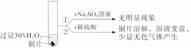 (3)(2023·湖北卷,18 节选)铜与过量 $ H_2O_2 $ 反应的探究如下: