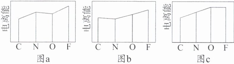 3. (2022·全国甲卷,35 节选)图 a、b、c 分别表示 C、N、O 和 F 的逐级电离能 I 变化趋势(纵坐标的标度不同)。第一电离能的变化图是________(填图号),判断的根据是________;第三电离能的变化图是________(填图号)。
