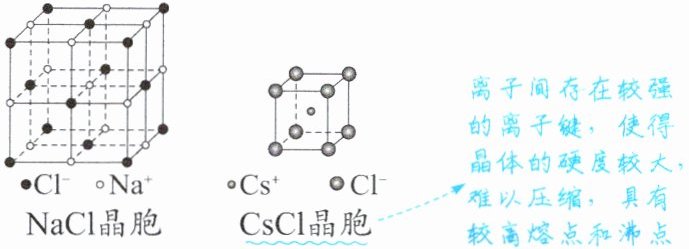 ②CsCl型:在晶体中,每个Cs⁺吸引个Cl⁻,每个Cl⁻吸引个Cs⁺,配位数均为。