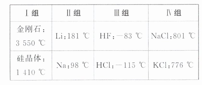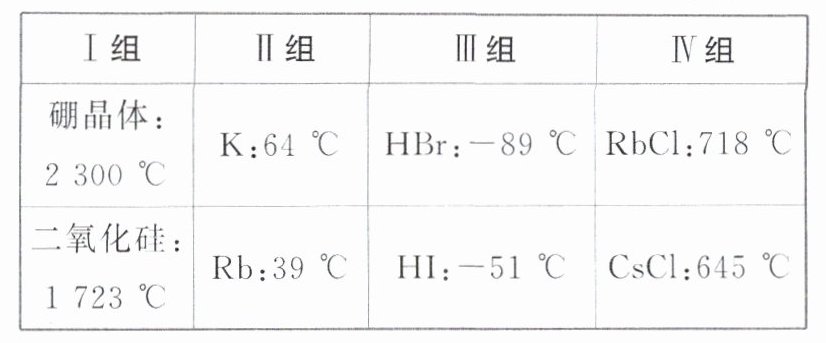 (1)Ⅰ组属于晶体,其熔化时克服的微粒间的作用力是。