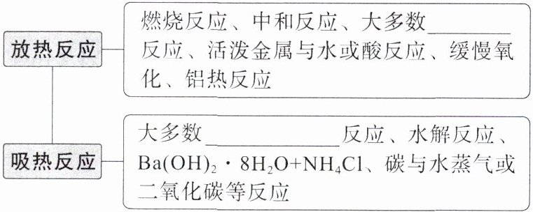 放热反应:燃烧反应、中和反应、大多数化合反应、活泼金属与水或酸反应、缓慢氧化、铝热反应。