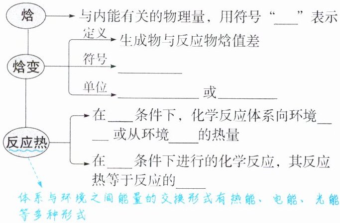 综上,答案依次为:$H$;$\Delta H$;$kJ/mol$;$kJ· mol^{-1}$;恒压;释放;吸收;恒压;焓变;①放热;②$E_2 - E_1$;③不能;④$E_3 - E_2$;吸热;$>$;放热;化合;分解 。