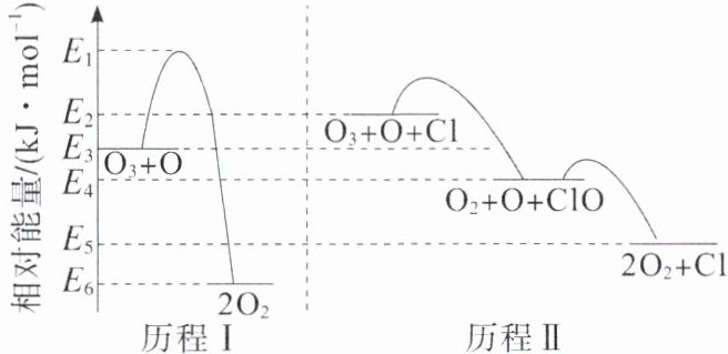 D.历程Ⅰ、历程Ⅱ中速率最快的一步反应的热化学方程式为$ ClO(g) + O(g) \xlongequal\ O_2(g) + Cl(g) \ \ \Delta H=(E_5-E_4) kJ· mol^{-1} $