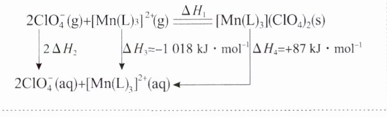 碳酰肼类化合物 $[Mn(L)_3](ClO_4)_2$ 是种优良的含能材料,可作为火箭推进剂的组分,其相关反应的能量变化如图所示,已知 $\Delta H_2 = -299kJ · mol^{-1}$,则 $\Delta H_1$ 为