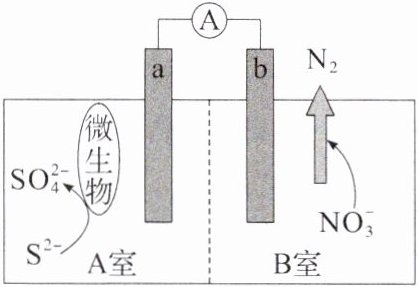 )A.$ a $极的电极反应式为$ 5S^{2-} + 40e^- + 20H_2O = 5SO_4^{2-} + 40H^+ $