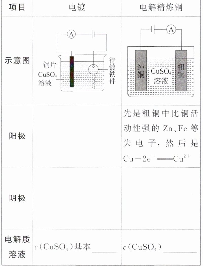 |电极反应|阳极:$Cu - 2e^- \longrightarrow Cu^{2+}$
