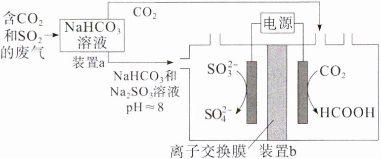 D.装置b中的总反应为${SO^{2-}_{3} + CO_{2} + H_{2}O\xlongequal{电解}HCOOH + SO^{2-}_{4}}$