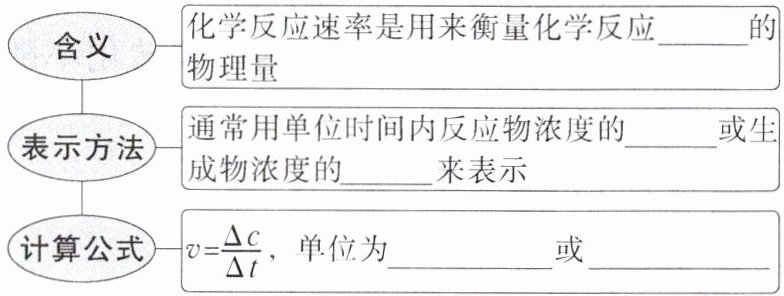 (1)快慢 减小 增大 $\mathrm{mol· L^{-1}· s^{-1}}$ $\mathrm{mol· L^{-1}· min^{-1}}$