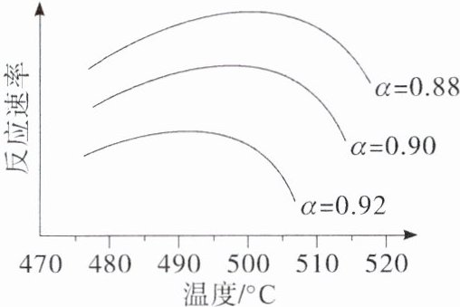 (1) 为寻求固定投料比下不同反应阶段的最佳生产温度,绘制相应转化率$(\alpha)$下反应速率(数值已略去)与温度的关系如下图所示,下列说法正确的是