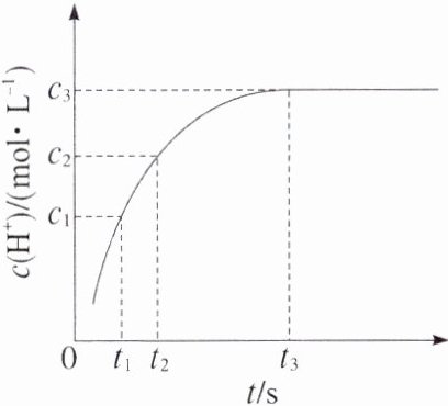 [对点训练 2](2024·七省适应性测试安徽化学,9)稀土被称为新材料的宝库。稀土中的镧系离子可用离子交换法分离,其反应可表示为 $Ln^{3+}(aq) + 3RSO_3H(s)\rightleftharpoons (RSO_3)_3Ln(s) + 3H^+(aq)$。某温度时,$c(H^+)$ 随时间变化关系如图所示。下列说法正确的是(