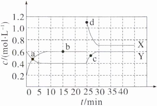 D.反应进行至 $25$ $min$ 时,曲线发生变化的原因是增加 $Y$ 的浓度