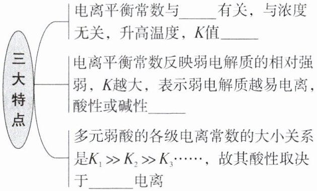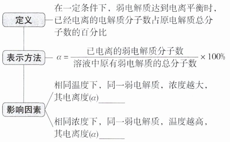 在一定条件下,当弱电解质的电离达到平衡时,溶液中各组分的浓度之间存在一定的关系。对于一元弱酸或一元弱碱来说,当达到电离平衡时,溶液中弱电解质电离所生成的各种______的乘积,与溶液中______的浓度之比是一个常数,这个常数叫做电离平衡常数,简称电离常数。