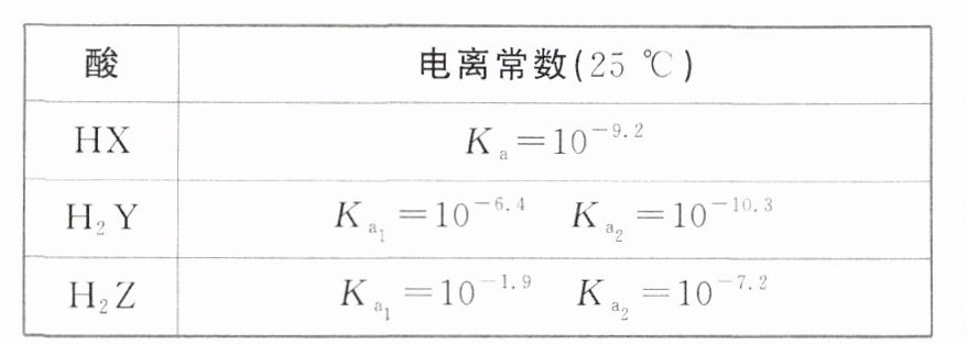 [对点训练1] 现有$HX$、$H_{2}Y$和$H_{2}Z$三种酸,各酸及其盐之间不发生氧化还原反应,它们的电离常数如表所示。