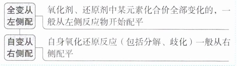 全变从左侧配:氧化剂、还原剂中某元素化合价全部变化的,一般从左侧反应物开始配平