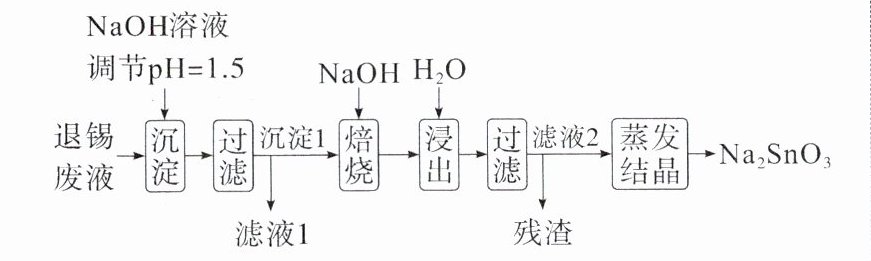 (1)$SnO_2 + 2NaOH \stackrel{焙烧}{=}Na_2SnO_3 + H_2O$