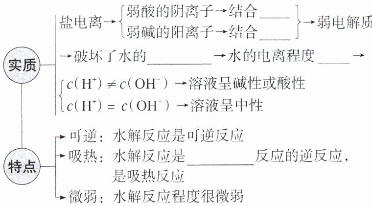(1)水电离产生的$H^+$或$OH^-$ 弱电解质 弱酸根离子 弱碱阳离子