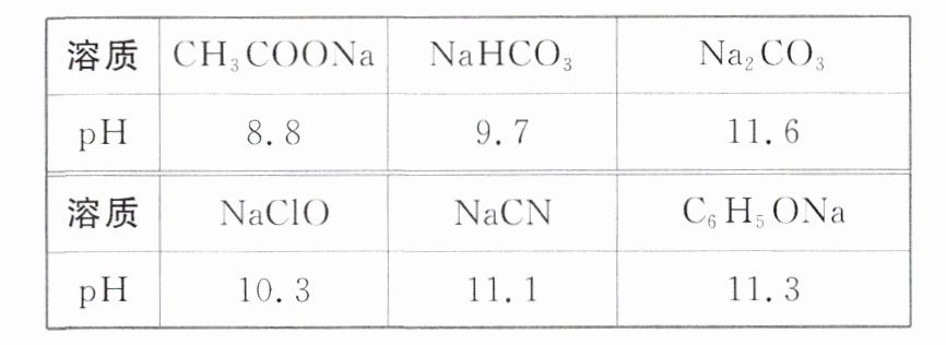 6. 已知在常温下测得浓度均为0.1 mol·L⁻¹的下列6种溶液的pH如表所示: