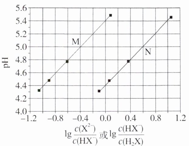 B.曲线N表示pH与$\lg\frac{c(HX^{-})}{c(H_{2}X)}$的变化关系