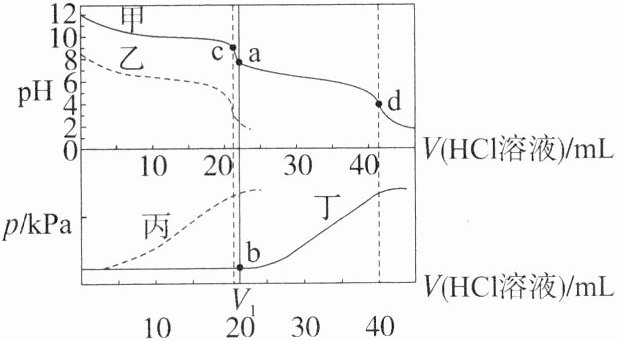 C.根据$pH - V(HCl$溶液)图,滴定分析时,$c$点可用酚酞、$d$点可用甲基橙作指示剂指示滴定终点