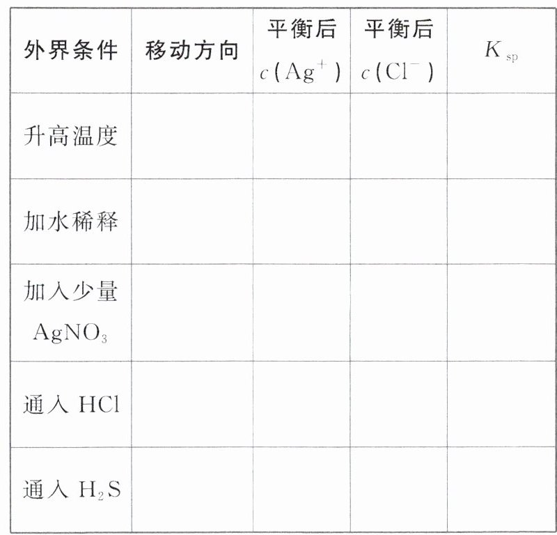 ② 外因[以 $AgCl(s)\rightleftharpoons Ag^{+}(aq)+Cl^{-}(aq)$ $\Delta H>0$ 为例]: