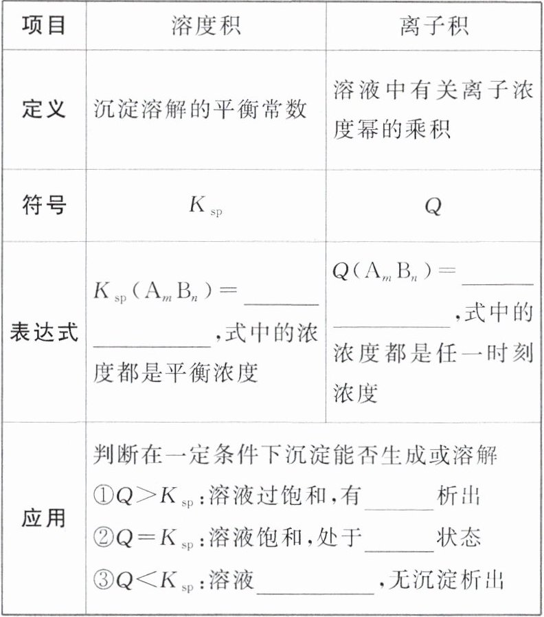 1.cᵐ(Aⁿ⁺)·cⁿ(Bᵐ⁻) cᵐ(Aⁿ⁺)·cⁿ(Bᵐ⁻) 沉淀 平衡 未饱和