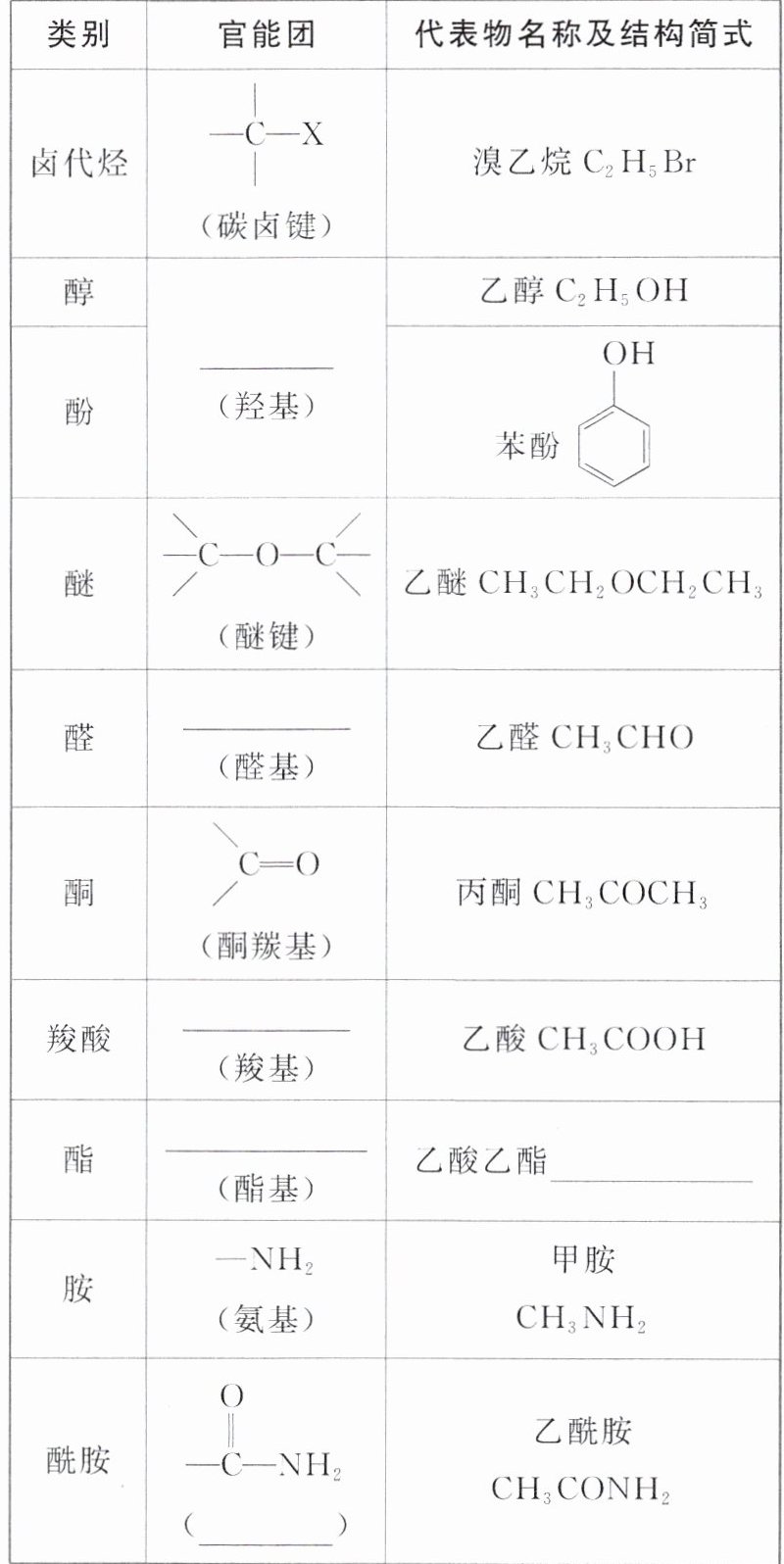 (2)①原子 原子团 ②$\mathrm{C=C}$ $\mathrm{-OH}$ $\mathrm{-C-H}$ $\mathrm{-C-O-H}$ $\mathrm{-C-O-}$ $\mathrm{CH_3COOCH_2CH_3}$ 酰胺基