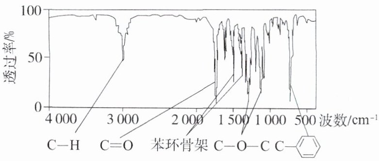 例3D 解析有机物A的分子式为$\mathrm{C_9H_8O_2}$,不饱和度为5,A分子中只含一个苯环且苯环上只有1个取代基,其核磁共振氢谱有4组吸收峰,说明分子中含有4种H原子,峰面积之比为1∶2∶2∶3,则4种氢原子个数之比 = 1∶2∶2∶3,结合红外光谱可知,分子中存在酯基等基团,且苯环与C原子相连,故A的结构简式为