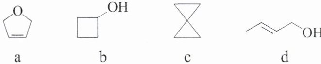 2. C 解析 a含有碳碳双键,能够使溴的$CCl_4$溶液褪色,而b不可以,A正确;b和d的分子式均为$C_4H_8O$,结构不同,互为同分异构体,B正确;c的二氯代物有