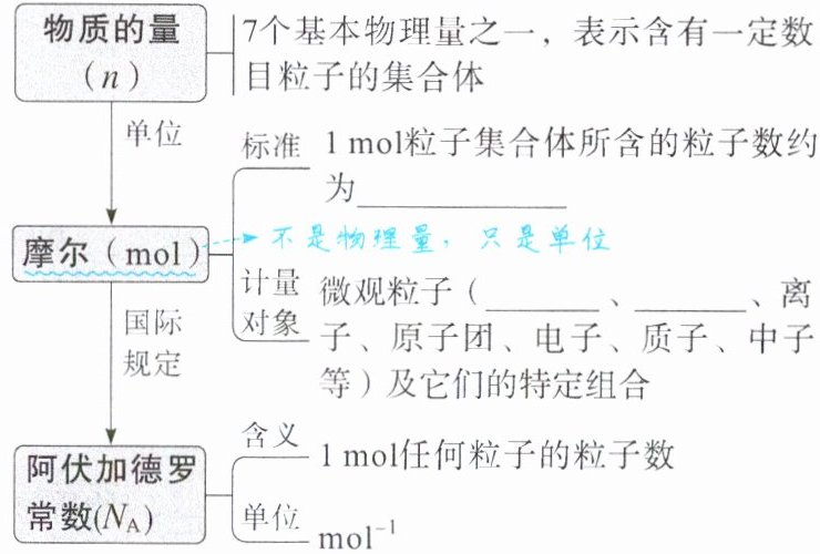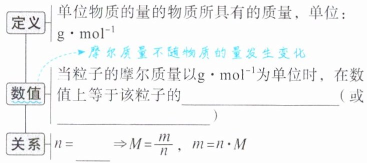 2.相对分子质量 相对原子质量$ \frac{m}{M} $应用示例:$(1)0.4N_{A} (2)1mol 1.5N_{A}$