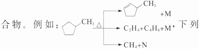 例1C 解析根据反应物和生成物的分子式或结构简式间的差异,根据原子守恒规律,可以判断出M是$\mathrm{H}_{2}$,N是$\mathrm{C}_{3}\mathrm{H}_{8}$,A正确;