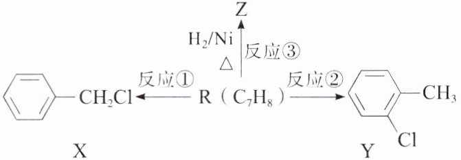 例1(教材改编题)由芳香烃R(C₇H₈)可以生成3种有机化合物X、Y和Z,转化关系如下图所示: