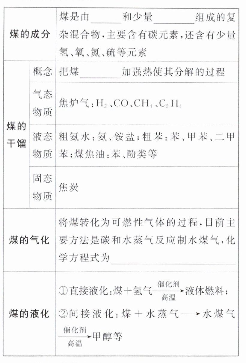 (1)有机物 无机物 隔绝空气 $\mathrm{C}(\mathrm{s})+\mathrm{H}_{2}\mathrm{O}(\mathrm{g})\xrightarrow{高温}\mathrm{CO}(\mathrm{g})+\mathrm{H}_{2}(\mathrm{g})$ (3)②沸点 汽油 柴油 含碳原子数较少、沸点较低 汽油 乙烯