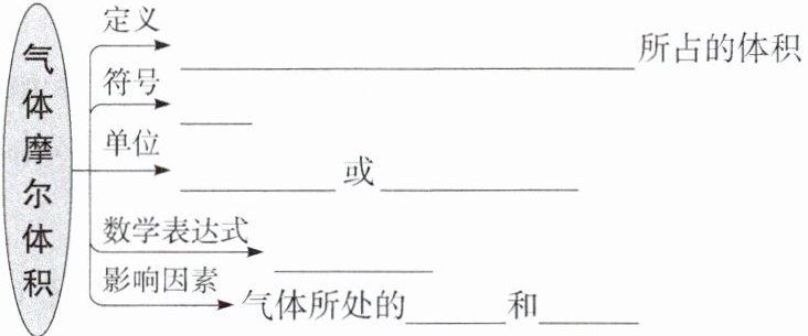 (2)单位物质的量的气体$ V_{m} L·mol^{-1} m^{3}·mol^{-1} V_{m}=\frac{V}{n} $温度 压强