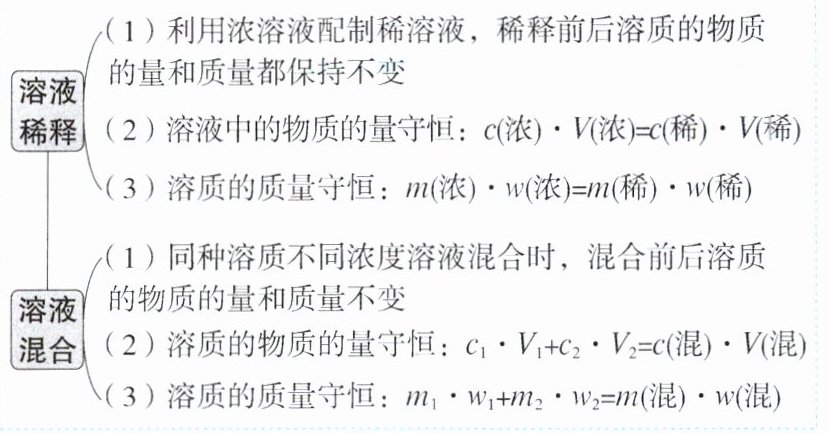 稀释或混合溶液时,计算溶质的物质的量浓度存在如下规律: