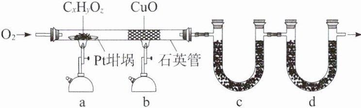 (3)若样品 CₓHᵧO_z 为 0.023 6 g,实验结束后,c 管增重 0.010 8 g,d 管增重 0.035 2 g。质谱测得该有机化合物的相对分子质量为 118,其分子式为