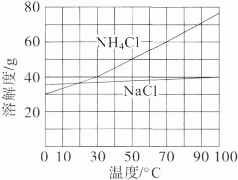 g。②向滤液中加入NaCl粉末,存在NaCl(s) + NH₄Cl(aq)→NaCl(aq) + NH₄Cl(s)过程。为使NH₄Cl充分析出并分离,根据NaCl和NH₄Cl溶解度曲线,需采用的操作为