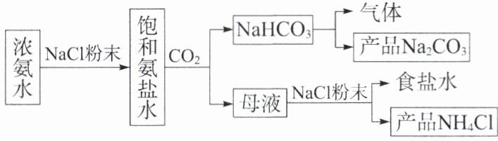化工专家侯德榜发明的侯氏制碱法为我国纯碱工业和国民经济发展做出了重要贡献,某化学兴趣小组在实验室中模拟并改进侯氏制碱法制备NaHCO₃,进一步处理得到产品Na₂CO₃和NH₄Cl,实验流程如图: